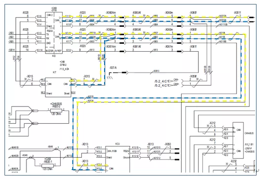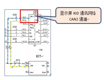 考慮到卡爾瑪機(jī)車CAN bus系統(tǒng)的冗余控制功能,懷疑其他通訊網(wǎng)絡(luò)異常也可能會(huì)通過CAN2通道反應(yīng)出來,進(jìn)一步檢查顯示屏KID的其他通訊線路。