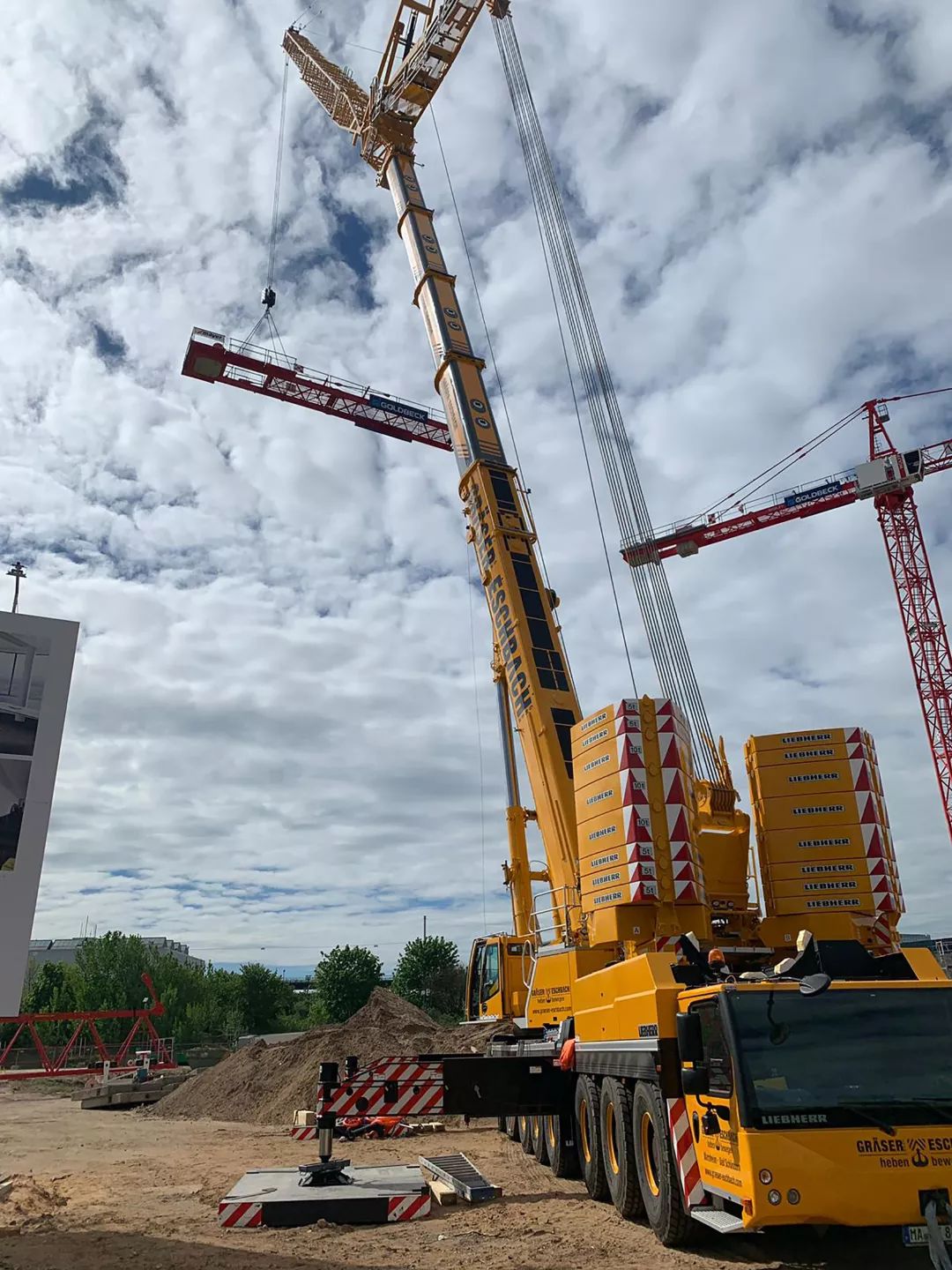 2019年7月愛茵根/多瑙 (德國) - 格雷澤 - 埃舍爾巴赫集團 (Gr?ser-Eschbach) 與位于曼海姆(Mannheim) 和巴德舍伯恩 (Bad Sch?nborn) 的公司最近交付了一款新的旗艦產(chǎn)品 - 新型利勃海爾全路面移動式起重機LTM 1450-8.1,該產(chǎn)品目前是其車隊中最大的起重機。其首次任務(wù)之一就拆除法蘭克福機場新蓋特威花園 (Gateway Gardens) 商業(yè)全球商務(wù)村的一臺塔式起重機。