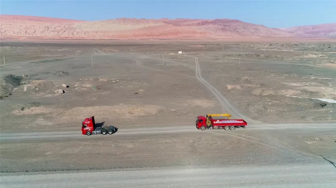 吐魯番,位于新疆中部。因其日照充足、高溫、降雨稀少且大風頻繁,故有“火州”之稱。吐魯番夏季極端氣溫可達49.6℃,地表溫度可達80℃,因此這里成為檢驗車輛高溫適應性的最佳場地。本次徐工重卡高溫試驗車隊由漢風G7國六牽引車和漢風G5國六隨車吊組成。