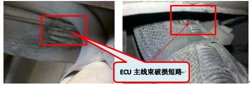 初步判斷機(jī)車ECU控制器到底盤的主線束存在異常,最終檢查發(fā)現(xiàn)該主線束在機(jī)車各拐角或油管接觸部位多處因磨損而造成的破皮短路現(xiàn)象。