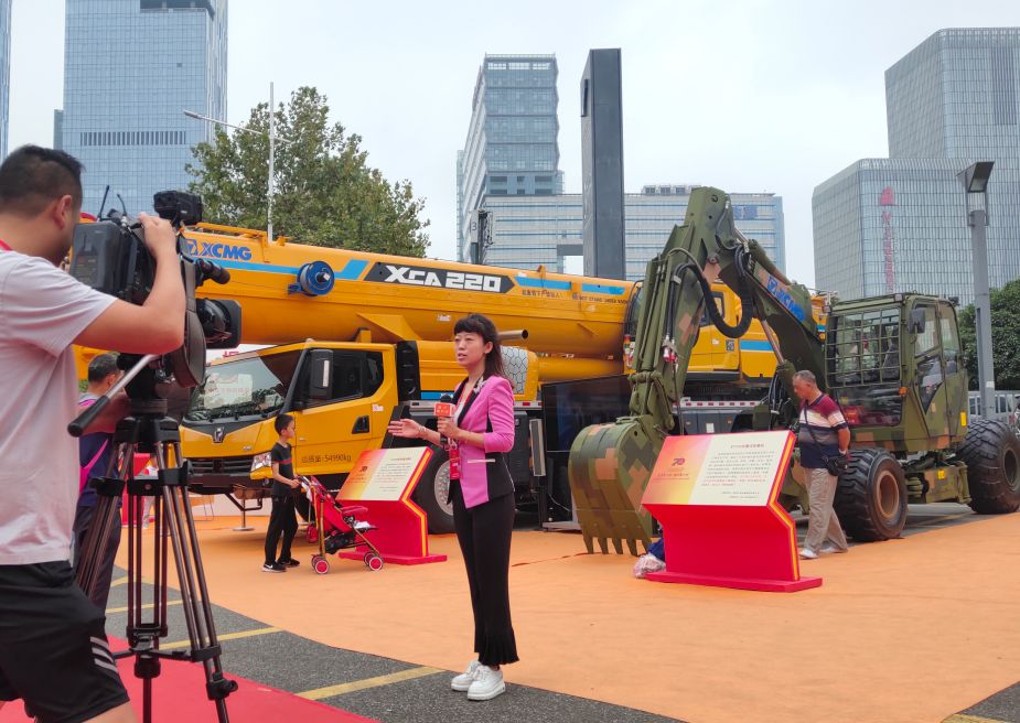 在70周年成就展的入口處最顯眼的位置,擺放著兩臺由徐工集團(tuán)生產(chǎn)的設(shè)備,這兩臺設(shè)備是當(dāng)年習(xí)總書記到徐州視察時,專門參觀試乘過的。