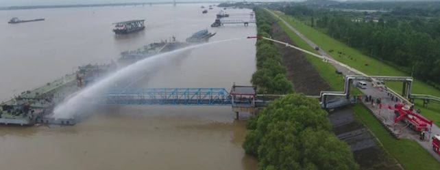 大跨度舉高噴射消防車水力測(cè)試
