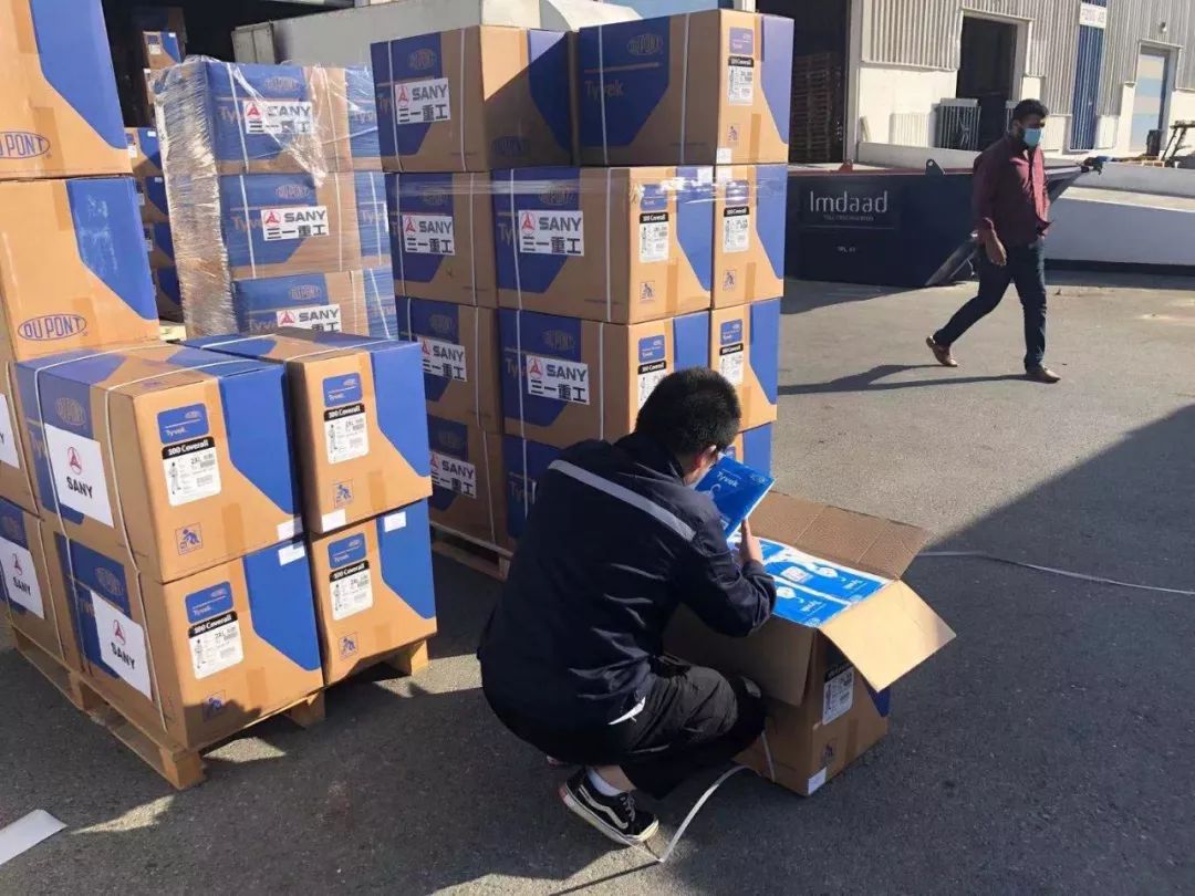 三一中東大區(qū)迅速展開行動,在區(qū)域內(nèi)各國地毯式搜索醫(yī)療物資。1月30日,通過在阿聯(lián)酋的客戶關(guān)系網(wǎng),三一阿聯(lián)酋團(tuán)隊“鎖定”一家供貨商有5萬件杜邦醫(yī)用防護(hù)服。2月1日,三一阿聯(lián)酋團(tuán)隊前往倉庫驗貨并現(xiàn)場抽檢合格后,立即買下了這批價值約660萬人民幣的醫(yī)用防護(hù)服。