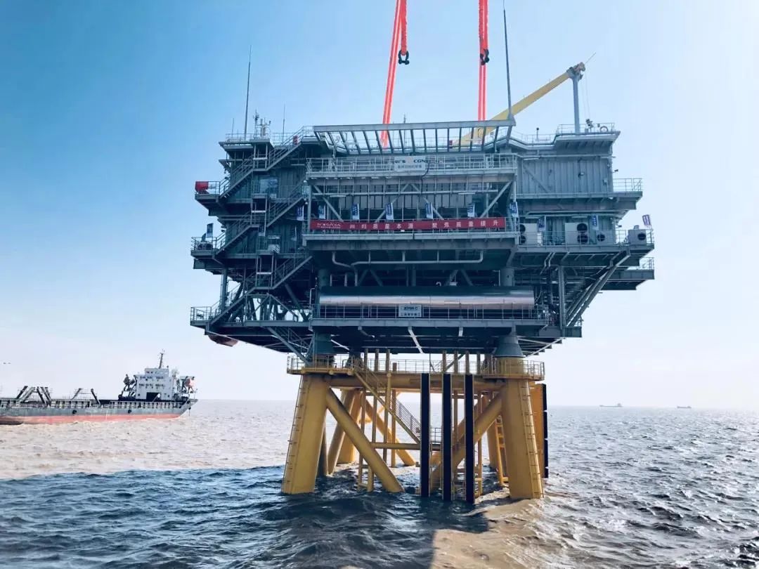振華重工負(fù)責(zé)海上升壓站上部組塊的建造、運(yùn)輸工程。4月16日,該項(xiàng)目完成海上機(jī)組吊裝。