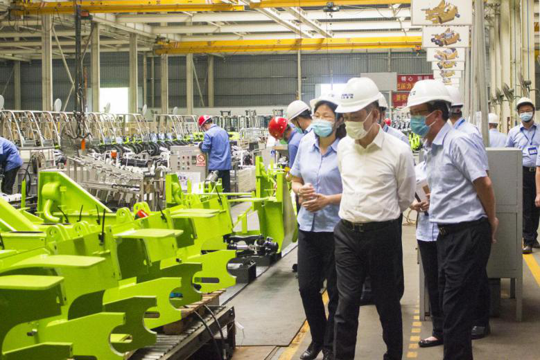 2020年5月13日下午,中聯(lián)重科董事長詹純新,副總裁熊焰明、孫昌軍,助理總裁唐少芳,公司高管申柯、胡克嫚,董事長助理盧青等一行集團(tuán)總部領(lǐng)導(dǎo)及中聯(lián)農(nóng)機(jī)領(lǐng)導(dǎo),蒞臨工業(yè)車輛公司視察指導(dǎo)工作。