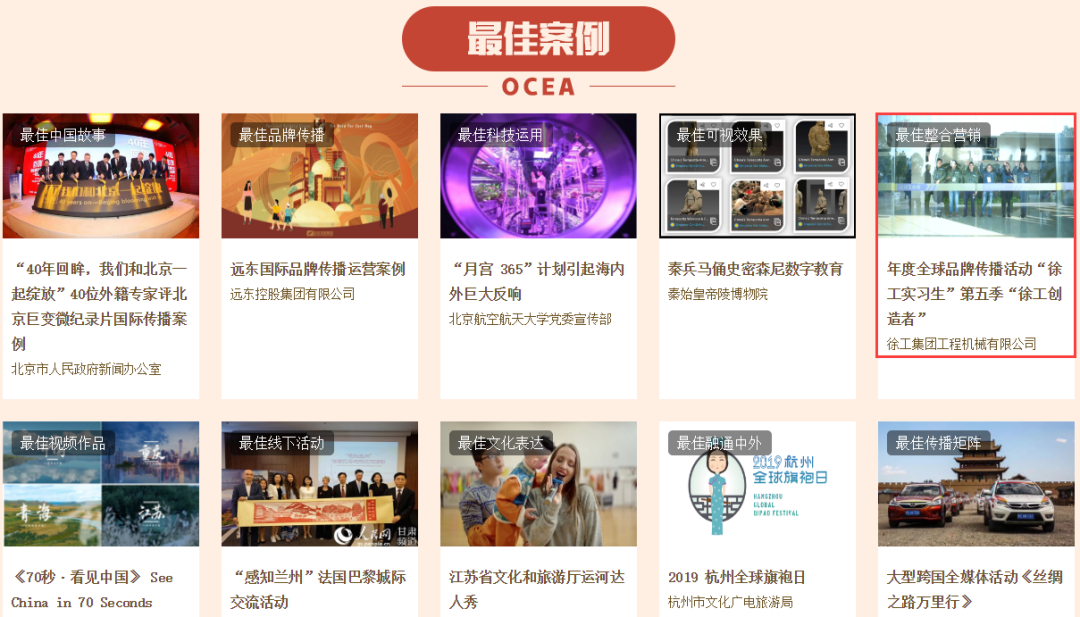 這是繼2018年境外社交媒體整合營銷項目獲評首屆“海帆獎”“中國品牌海外傳播十大杰出案例”之后,徐工再度脫穎而出,成為中國品牌國際化推廣的典范。