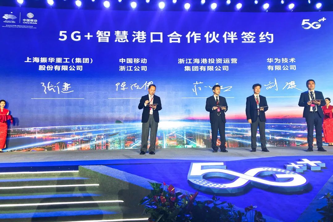 5月15日,“新基建 新生態(tài) 新未來”——5G+行動推進(jìn)大會在浙江杭州舉行。會上,上海振華重工、華為公司、中國移動浙江公司、浙江省海港集團(tuán)聯(lián)合簽署了“寧波5G智慧港口”項(xiàng)目應(yīng)用合作協(xié)議,振華重工黨委書記、董事長朱連宇,華為公司副總裁劉康,中國移動浙江公司董事長鄭杰,浙江省海港集團(tuán)董事長毛劍宏等出席儀式。振華重工副總裁張健代表公司簽署了合作協(xié)議,四方將攜手打造“5G City”的港口類示范應(yīng)用。