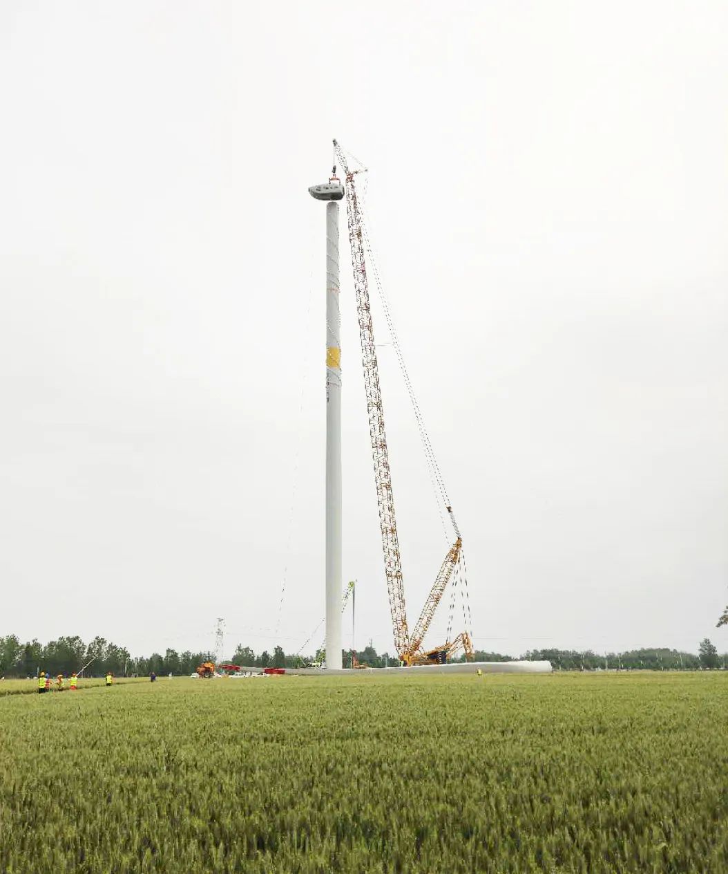 今年1月,XGC11000圓滿完成“全球首座160米預(yù)應(yīng)力抗疲勞構(gòu)架式風(fēng)塔”機組的吊裝任務(wù)。目前,XGC11000累計完成400余臺風(fēng)機吊裝任務(wù)。