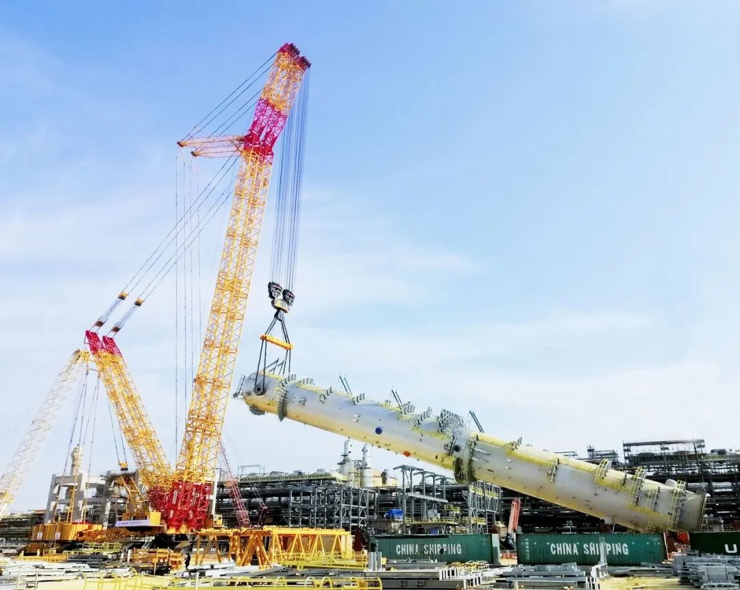 沿著“一帶一路”的路徑,去年10月,XGC88000走出國門,在沙特完成海外首吊,今年3月,再次轉(zhuǎn)戰(zhàn)海外第二站阿曼,成功吊裝古雷煉化一體化項目中總重約2000噸的全球最大洗滌塔。中國技術(shù)、中國制造與中國吊裝方案完美結(jié)合,讓中國裝備制造技術(shù)的實力得到了全面而有力的彰顯。