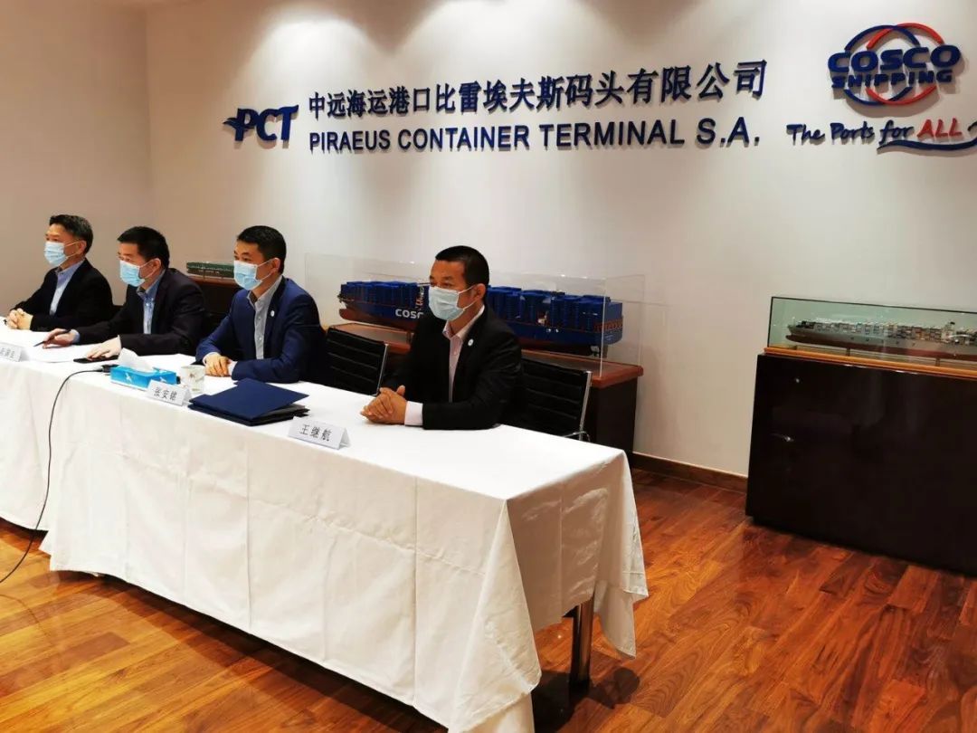 中遠(yuǎn)海運(yùn)港口有限公司董事總經(jīng)理張達(dá)宇、希臘PCT碼頭董事總經(jīng)理張安銘,以及振華重工黨委書記、董事長朱連宇,總裁、黨委副書記黃慶豐等分別在三地視頻連線出席簽約儀式。振華重工副總裁劉啟中與PCT碼頭董事總經(jīng)理張安銘作為雙方代表進(jìn)行云簽約。