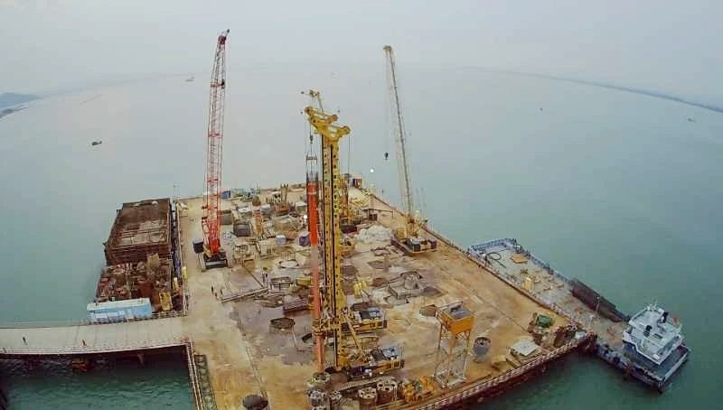 近日,汕頭牛田洋特大橋北主塔墩最后一根鉆孔樁順利灌注完成。這標(biāo)志著大橋建設(shè)取得突破性進(jìn)展,施工工序正式從樁基全水下施工,轉(zhuǎn)入到雙壁圍堰承臺(tái)半水上施工階段。
