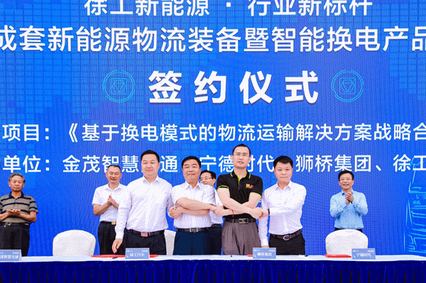 本次活動以“徐工新能源,行業(yè)新標(biāo)桿”為宣言,廣邀政企學(xué)界領(lǐng)袖智慧交鋒,共同研討換電物流解決方案;展示公路干線、城市配送、礦山施工等場景下的20余款純電動物流產(chǎn)品;與國內(nèi)龍頭上下游企業(yè)簽署了關(guān)于換電重卡解決方案、換電重卡推廣、氫燃料卡車研發(fā)的戰(zhàn)略合作協(xié)議;發(fā)布徐工與中國金茂聯(lián)合研發(fā)智能換電產(chǎn)品。