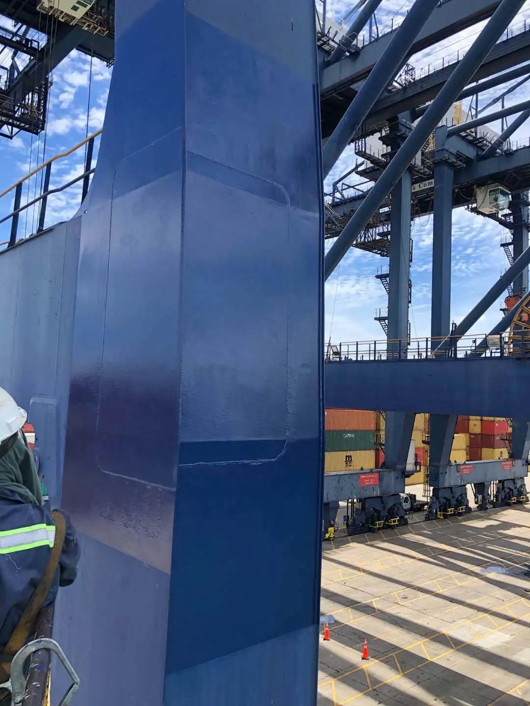 4月14日,拉美子公司接到用戶求助,位于大西洋一側(cè)的巴拿馬和黃Cristobal碼頭33號岸橋受到集裝箱船舶撞擊,受損嚴(yán)重,其中面海左側(cè)大車整體脫軌。子公司立即組織相關(guān)技術(shù)人員做好防護措施,奔赴現(xiàn)場勘查情況,進行搶修。