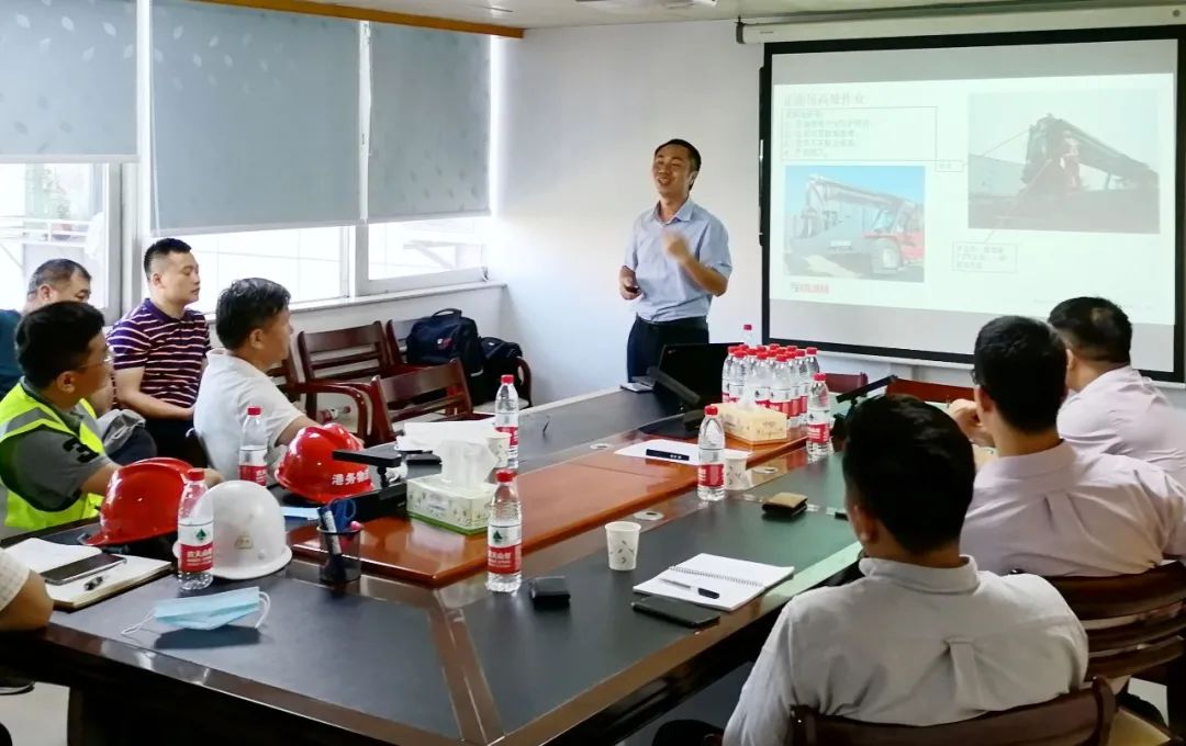 隨后,在現(xiàn)場(chǎng)活動(dòng)環(huán)節(jié),卡爾瑪華南服務(wù)經(jīng)理劉偉對(duì)正面吊和堆高機(jī)日常登高檢修及保養(yǎng)的安全注意事項(xiàng)進(jìn)行了實(shí)地講解。