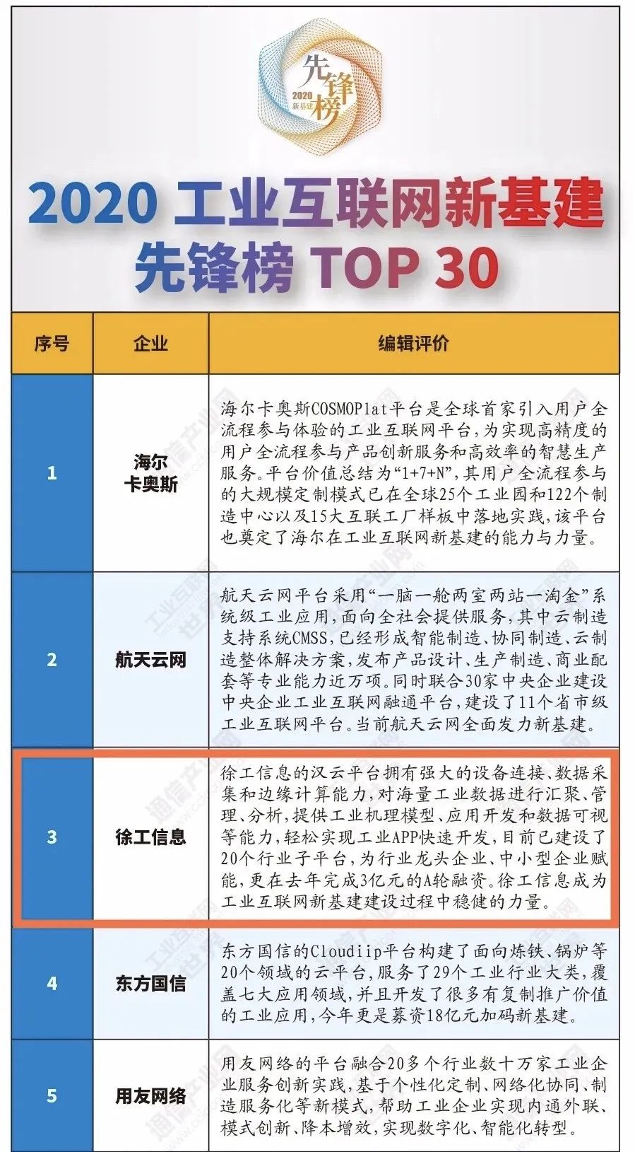 6月29日,工信部《通信產(chǎn)業(yè)報》發(fā)布《2020工業(yè)互聯(lián)網(wǎng)新基建先鋒榜TOP30》,徐工“漢云”工業(yè)互聯(lián)網(wǎng)平臺躋身前三甲。
