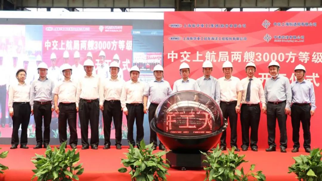 6月30日, 由振華重工為中交上航局建造的兩艘3000方等級(jí)自航耙吸挖泥船項(xiàng)目在啟東海洋公司順利舉行開(kāi)工儀式。