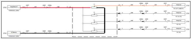 進(jìn)入控制系統(tǒng)診斷菜單,在ELSERV(電伺服)選項(xiàng)查看航空手柄輸出信號(hào),多次做門架下降動(dòng)作時(shí),航空手柄P1輸出信號(hào)由2.5V逐步變?yōu)?.5V,信號(hào)正常。