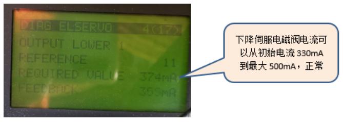 進(jìn)入診斷菜單,在ELSERV里查看,車架前KDU輸出到液壓主閥上面的下降伺服電磁閥線圈的電流值正常,現(xiàn)場(chǎng)檢查車架前KDU至液壓主閥下降電磁閥線路正常。