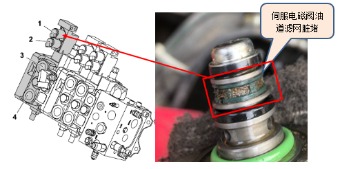 但機(jī)車使用兩天后,再次出現(xiàn)上述故障??柆敼こ處煹竭_(dá)現(xiàn)場(chǎng)后,從客戶機(jī)車負(fù)責(zé)人處了解到,該機(jī)車自購(gòu)車到機(jī)車故障發(fā)生時(shí)(機(jī)車已工作20641小時(shí))都沒有更換過液壓油。由此要求客戶現(xiàn)場(chǎng)安排更換液壓油并清洗液壓油箱,以及更換液壓油回油濾芯和精密濾芯等,并更換機(jī)車下降伺服電磁閥,拆檢并清洗其它伺服電磁閥。試車機(jī)車正常,故障解決。