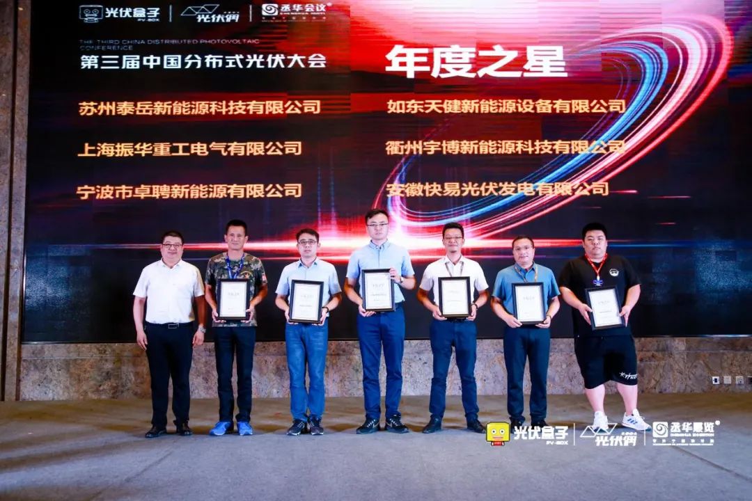 7月2日,第三屆中國分布式光伏大會在山東濟南召開。振華重工電氣集團受邀參加會議,并憑借出色的電站建設(shè)質(zhì)量和品牌影響力,斬獲“2019年中國分布式光伏年度之星”榮譽。
