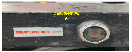 綜合以上信息,故障代碼100/111 /1 說明發(fā)動機冷卻液液位低。根據(jù)故障代碼表的措施,檢查機車冷卻液,發(fā)現(xiàn)機車膨脹水箱冷卻液液面低于正常要求。