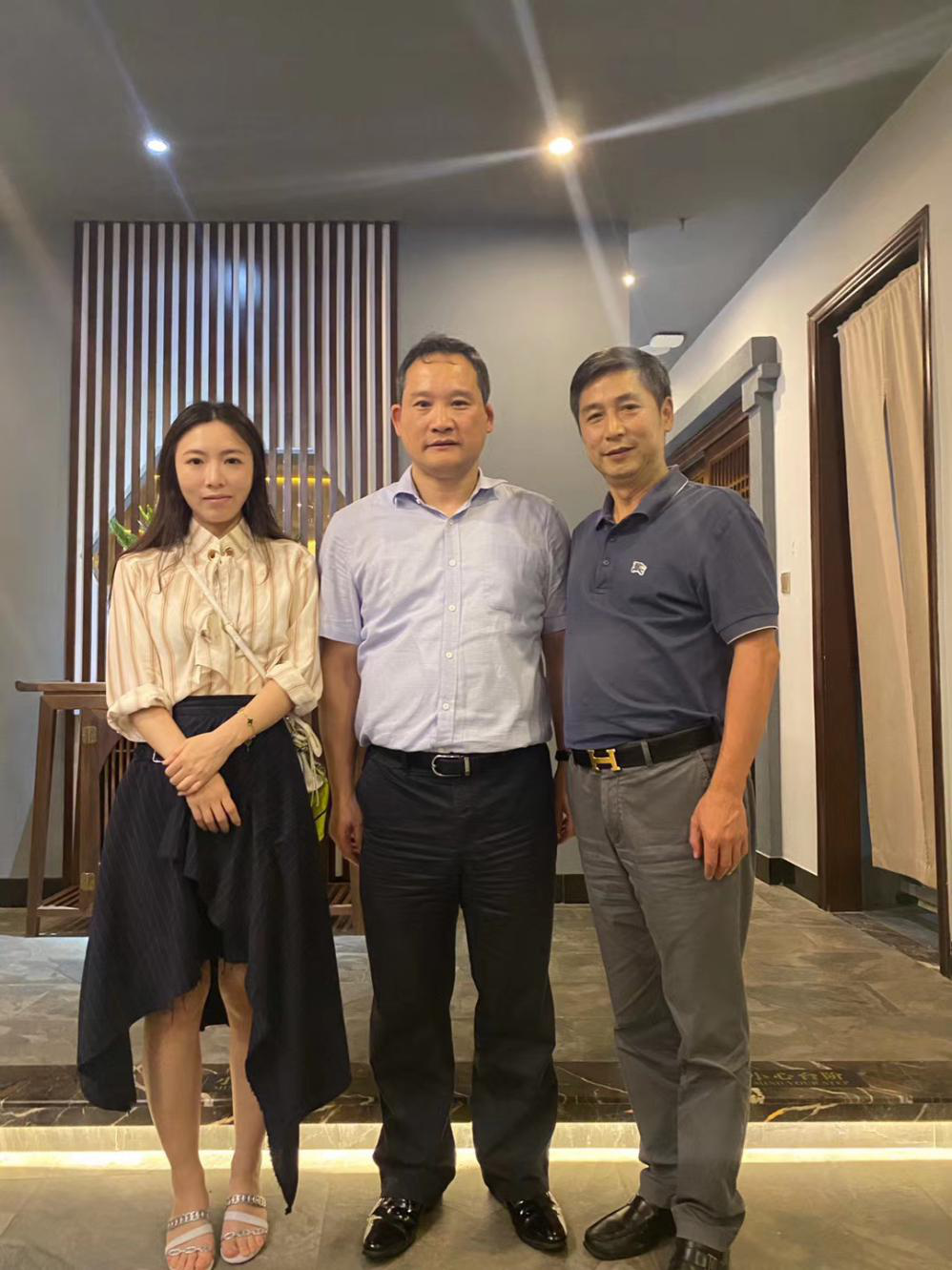 三一集團(tuán)董事、三一重卡董事長(zhǎng)梁林河(中間)與湖南省云傳公司董事長(zhǎng)賀志元(右一)及女兒(左一)合影