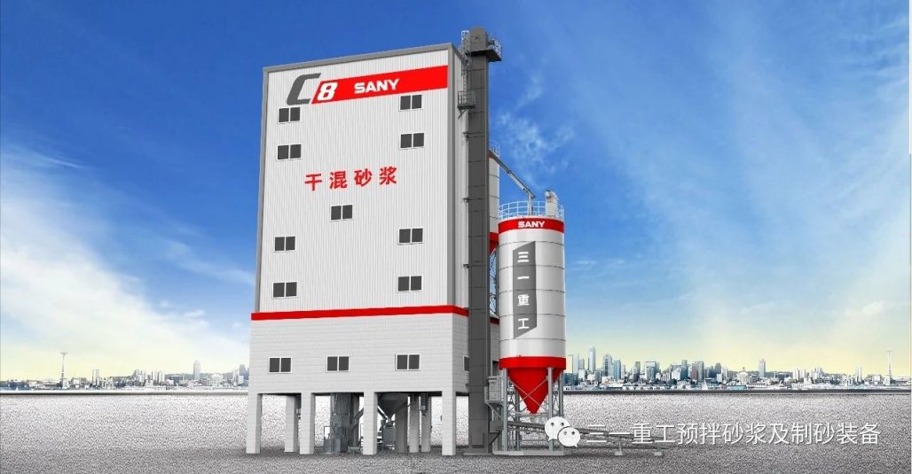 湖南省云傳訂購(gòu)的三一重工干混砂漿樓示例圖