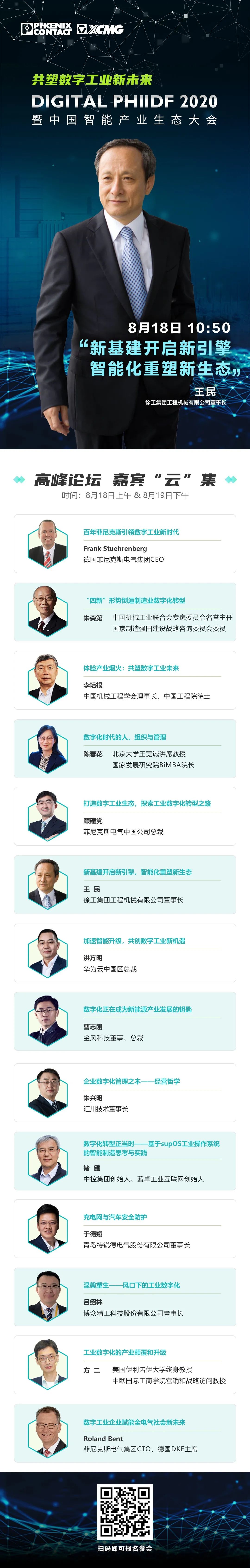 由菲尼克斯電氣集團主辦DIGITAL PHIIDF 2020 暨中國智能產(chǎn)業(yè)生態(tài)大會將于8月18日(周二)盛大開幕徐工集團工程機械有限公司黨委書記、董事長王民作為特邀嘉賓...