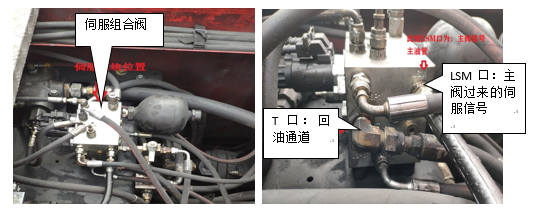 拆下車(chē)架主閥到伺服組合閥的LSM油管接頭,做大臂起升動(dòng)作,觀察LSM油管出油情況。并拆下伺服組合閥到變量泵的信號(hào)油管LSP1、LSP2、LSP3X,發(fā)現(xiàn)伺服組合閥出口的信號(hào)油流量明顯比車(chē)架主閥出口的LS信號(hào)油流量小很多?,F(xiàn)場(chǎng)用額外的備用油管直接將主閥的LS信號(hào)油連接到變量泵上,測(cè)試大臂起升動(dòng)作明顯加快,由此判斷上述故障原因集中在伺服組合閥部位。