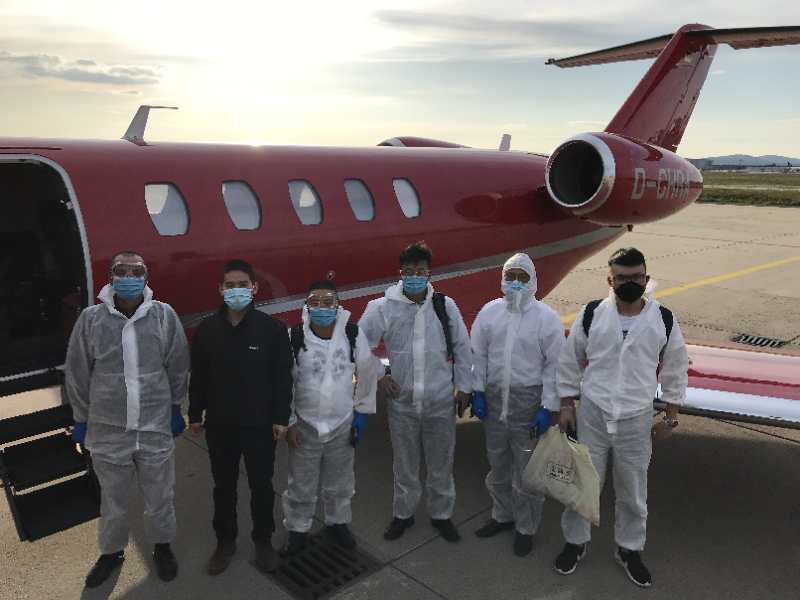 在拉脫維亞商務部、內政部、駐華大使館的多方協調下,當月中旬,裝機隊伍獲得特批入境許可。由于疫情管制且沒有直達航班,從法蘭克福包機前往里加,是當時唯一的出行方案。