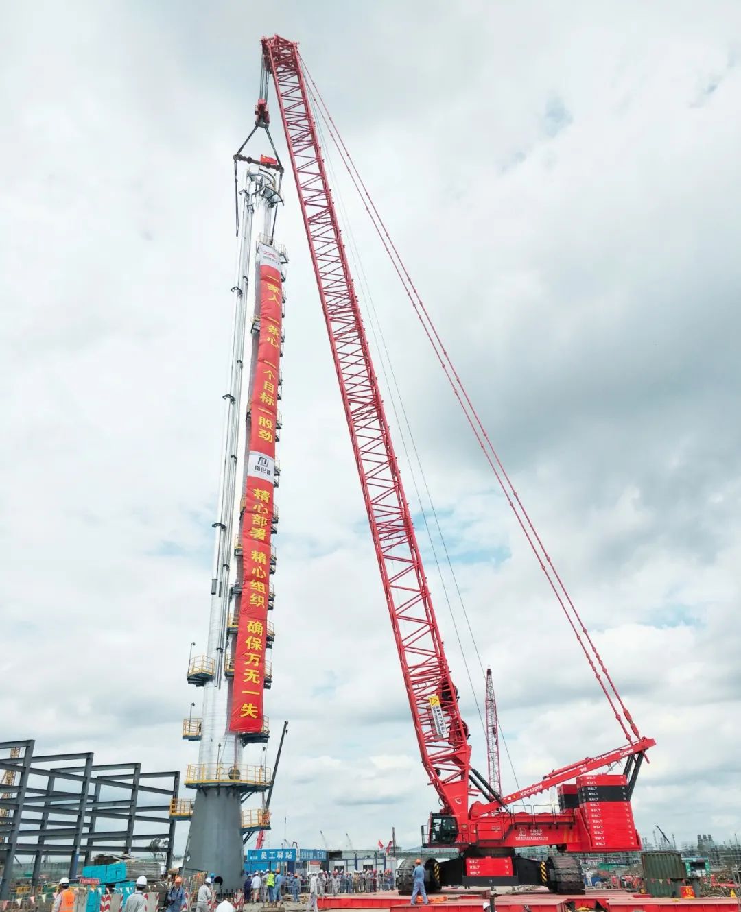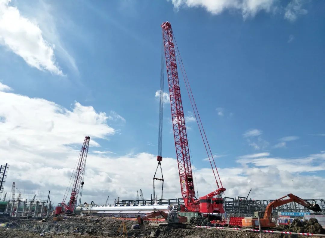 8月28日上午,行業(yè)最強(qiáng)的800噸級(jí)履帶起重機(jī)徐工XGC12000新裝上陣,光彩奪目。隨著項(xiàng)目方一聲令下,XGC12000采用84米標(biāo)準(zhǔn)重型主臂工況,歷時(shí)半個(gè)多小時(shí),高效完成寧波鎮(zhèn)海煉化項(xiàng)目170噸的脫異丁烷塔吊裝任務(wù)。