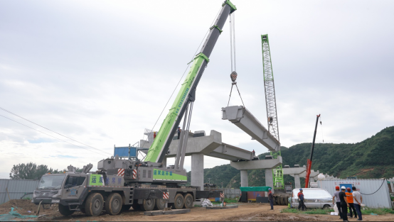 該路段因周邊有群山環(huán)繞,導(dǎo)致施工施展空間較小,再加上橋梁橋體的重量需求,只能使用滿足最大起重重量,且能自如吊起橋體的便捷起重機(jī)。目前國(guó)內(nèi)能適用的正是中聯(lián)最適合城建、高層建筑施工,特別是適合橋梁吊裝的6橋底盤(pán)平臺(tái)中吊重型產(chǎn)品 — ZAT4000V全地面起重機(jī)。