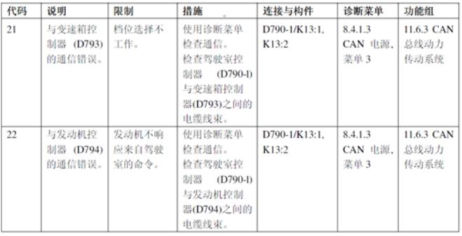 卡爾瑪工程師根據(jù)機(jī)車出現(xiàn)的故障代碼21、22,查閱相關(guān)技術(shù)手冊(cè),顯示如下: