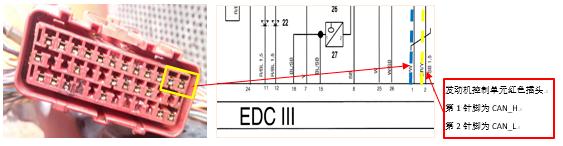 1、機(jī)車無法正常啟動(dòng)原因是由于動(dòng)力傳動(dòng)系統(tǒng)發(fā)生通訊故障,導(dǎo)致各控制器之間數(shù)據(jù)傳輸中斷,如上圖白線部分。本例由于KCU到動(dòng)力傳動(dòng)系統(tǒng)的通訊線路公共端針腳接觸不良,造成KCU與發(fā)動(dòng)機(jī)控制單元EDC和變速箱控制單元TCU之間的通訊故障,就會(huì)同時(shí)出現(xiàn)故障代碼21和22,機(jī)車無法啟動(dòng),無法行駛。