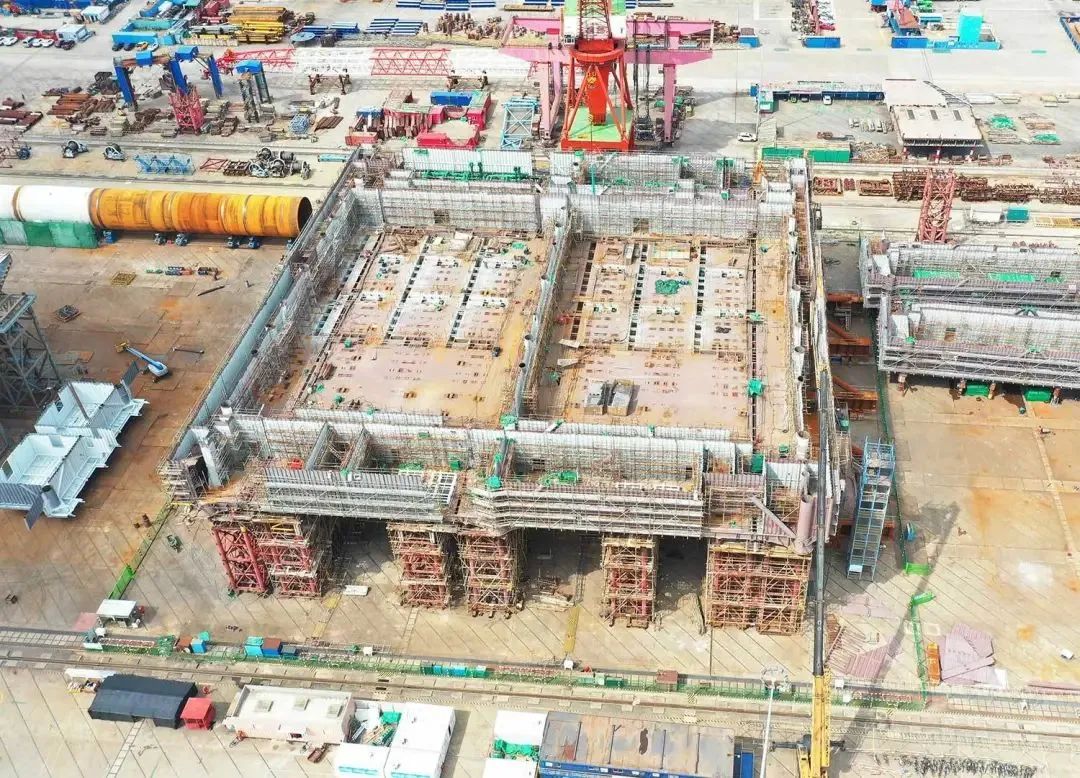 目前,該項(xiàng)目已經(jīng)開(kāi)始進(jìn)行二三層分段搭載工作,為了解決搭載前期準(zhǔn)備中重型搭載胎架布置工作周期長(zhǎng)、投入人員多等困難,項(xiàng)目組決定更改二三層搭載方案,創(chuàng)新性地將原先一層接一層的分段搭載,改為二三層先進(jìn)行上下小合攏,再進(jìn)行搭載的方式,實(shí)現(xiàn)二三層合攏與高胎架制作及布置、一層分段搭載同步進(jìn)行,確保計(jì)劃節(jié)點(diǎn)的按時(shí)完成。