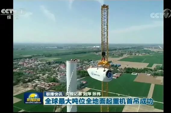 2019年5月,徐工XCA1600全地面起重機成功吊起最大直徑141米的葉輪并在140米高度安裝到位!刷新全地面起重機世界最高風機安裝紀錄。