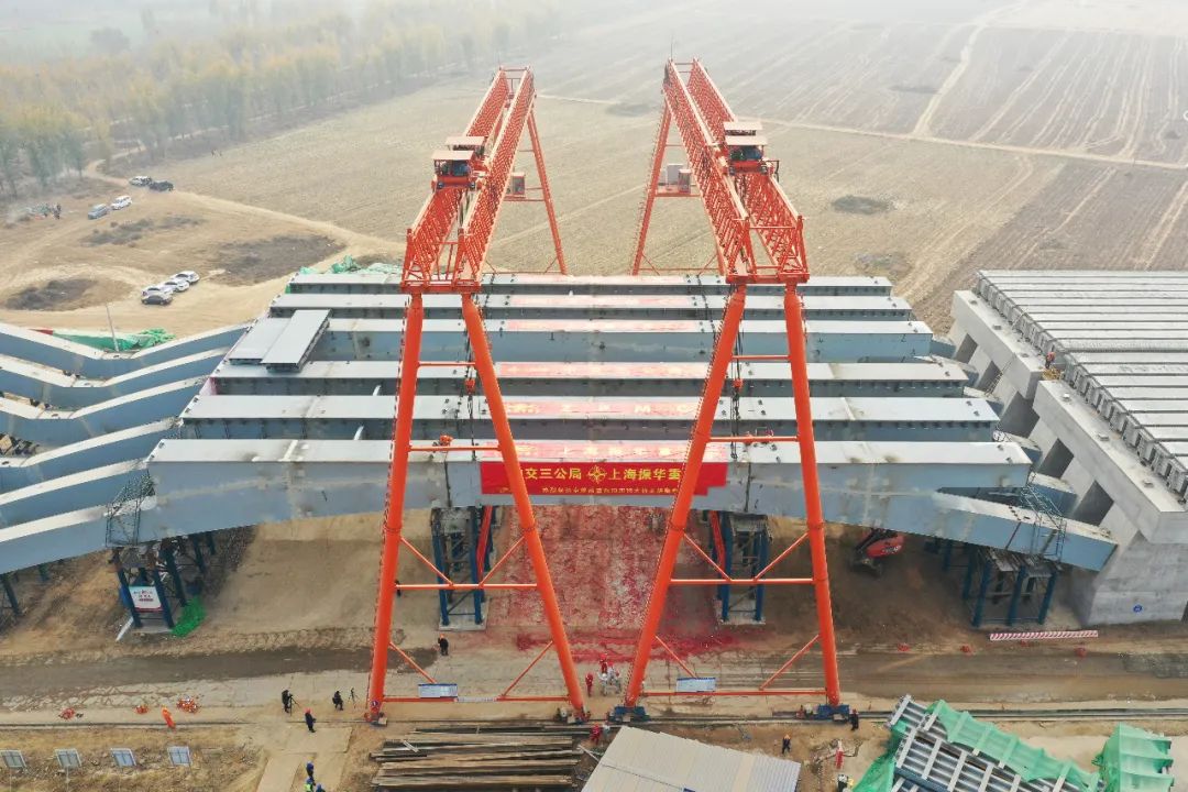 11月15日,由振華重工參建的國內(nèi)最大上承式鋼箱連拱橋京雄高速白溝河特大橋主拱順利合龍。