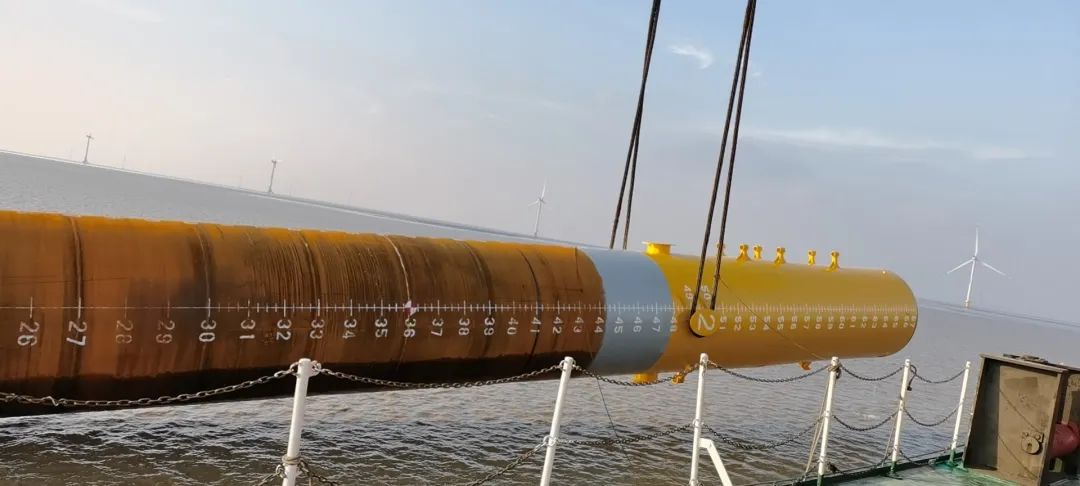 11月29日,龍?jiān)凑袢A如東蔣家沙50兆瓦海上風(fēng)電項(xiàng)目團(tuán)隊(duì)成功將直徑5米、重499噸的單樁深深扎根在如東潮間帶海域,標(biāo)志著該項(xiàng)目首根風(fēng)電基礎(chǔ)單樁順利完成施工。