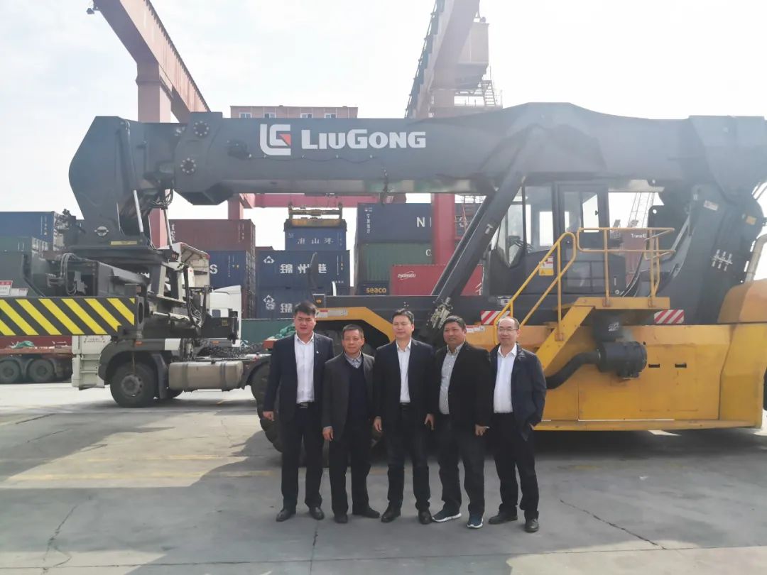 柳工叉車董事長王太平(左三)帶隊走訪戰(zhàn)略合作港口客戶