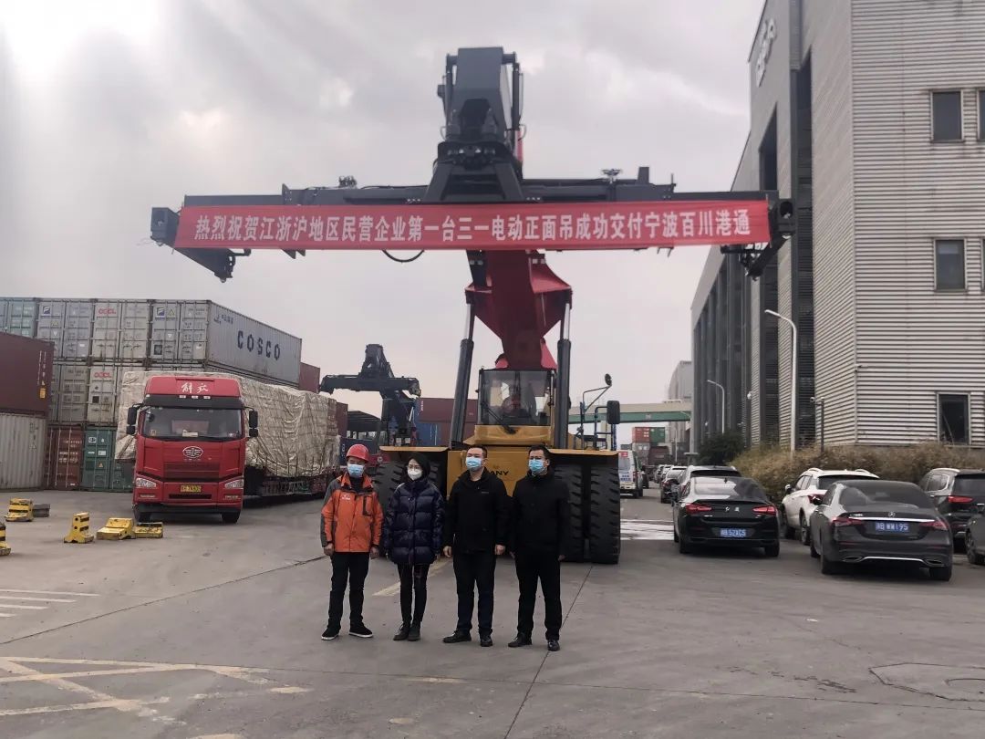 近日,一臺(tái)三一電動(dòng)正面吊交付寧波百川港通,這是江浙滬地區(qū)民企購(gòu)買(mǎi)的首臺(tái)新能源正面吊,也是百川港通第六臺(tái)三一正面吊。
