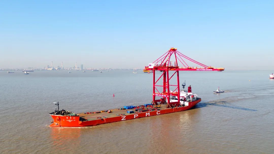 “振華31”輪裝載著寧波北侖第二集裝箱碼頭(三期)1臺岸橋起航發(fā)運(yùn)。