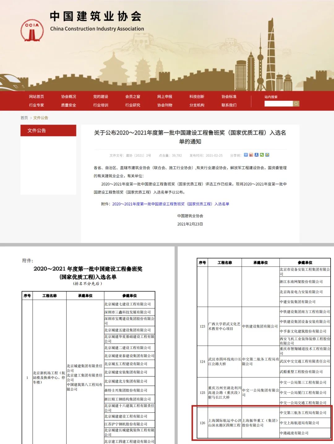 近日,由中國建筑業(yè)協(xié)會組織開展的"2020~2021年度中國建設(shè)工程魯班獎(國家優(yōu)質(zhì)工程)"(以下簡稱"魯班獎")第一批入選工程評選結(jié)果揭曉,振華重工參與承建的上...