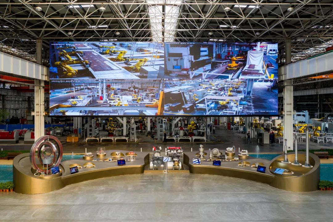 廠房中央,還有一塊超大屏幕,實(shí)時(shí)顯示三一在全國和全世界所有設(shè)備的運(yùn)行數(shù)據(jù)及員工工作狀態(tài)。周邊綠植錯(cuò)落有致,通透明亮,公共空間分布合理,地面一塵不染,看上去更像是自家“客廳”。