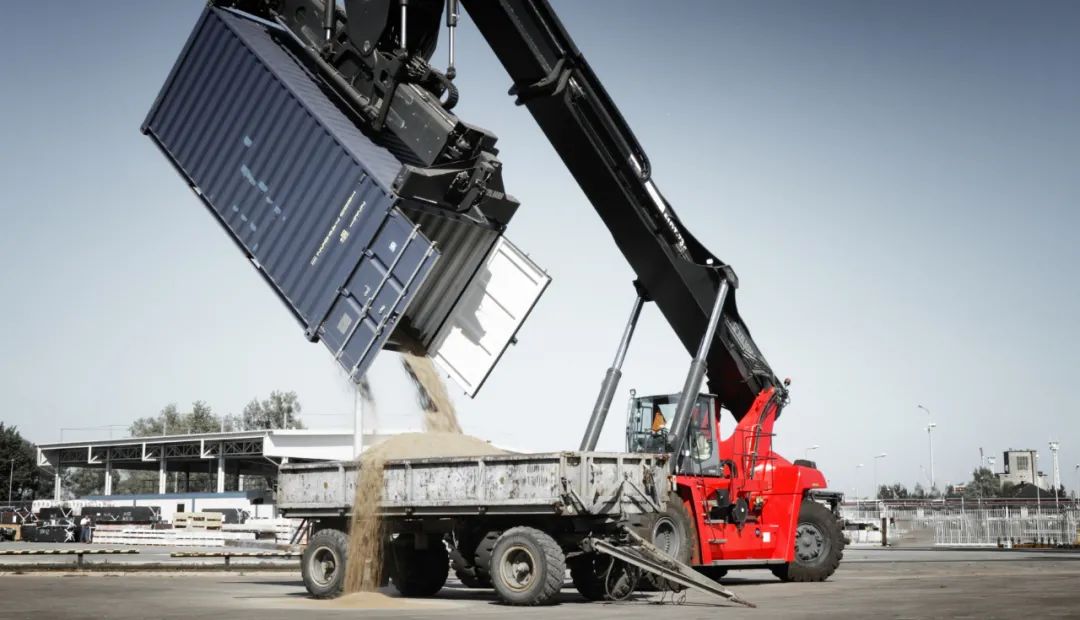 卡爾瑪正面吊專用傾斜吊具可安全精準(zhǔn)地處理20英尺、30英尺和40英尺集裝箱,55度全傾斜吊具可從側(cè)面或縱向卸下集裝箱內(nèi)貨物。我們提供2種吊具供您選擇,分別用于側(cè)向或縱向傾斜。