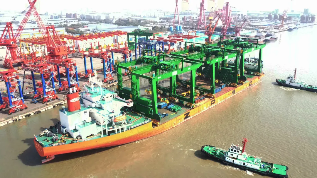 3月27日,“振華32”輪裝載中遠海運海南洋浦小鏟灘碼頭項目第二批設(shè)備緩緩駛離長興基地碼頭,前往目的地。