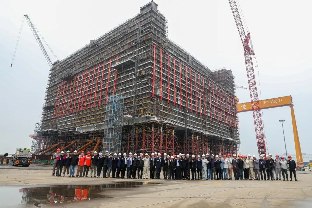 海上換流站建造安裝是整個柔性直流輸電工程中最重要、最艱難的一環(huán)。在整個建造過程中,項目部克服了首制項目技術難度大、工期緊、新冠疫情影響等困難,始終按照項目管理及計劃要求,高標準、高質(zhì)量地完成了開工、下部基礎及導管架海上安裝、上部模塊結構外場搭載等多個重大節(jié)點,順利實現(xiàn)本次上部模塊封頂,為后續(xù)內(nèi)部各系統(tǒng)完整與調(diào)試、整體落胎滑移發(fā)運奠定了基礎。
