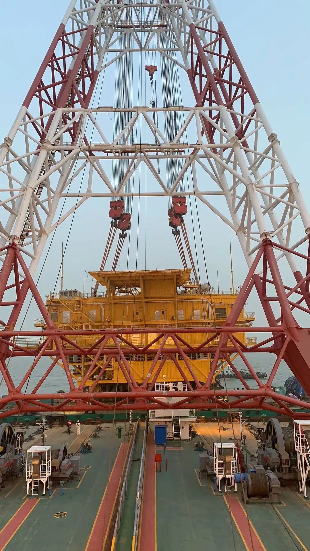 全體船員和項目組人員密切配合,時刻關(guān)注氣象、海況,綜合現(xiàn)場資源,成功完成江蘇如東H4#、H7#海上升壓站上部組塊吊裝任務,創(chuàng)下三天兩吊最新紀錄。