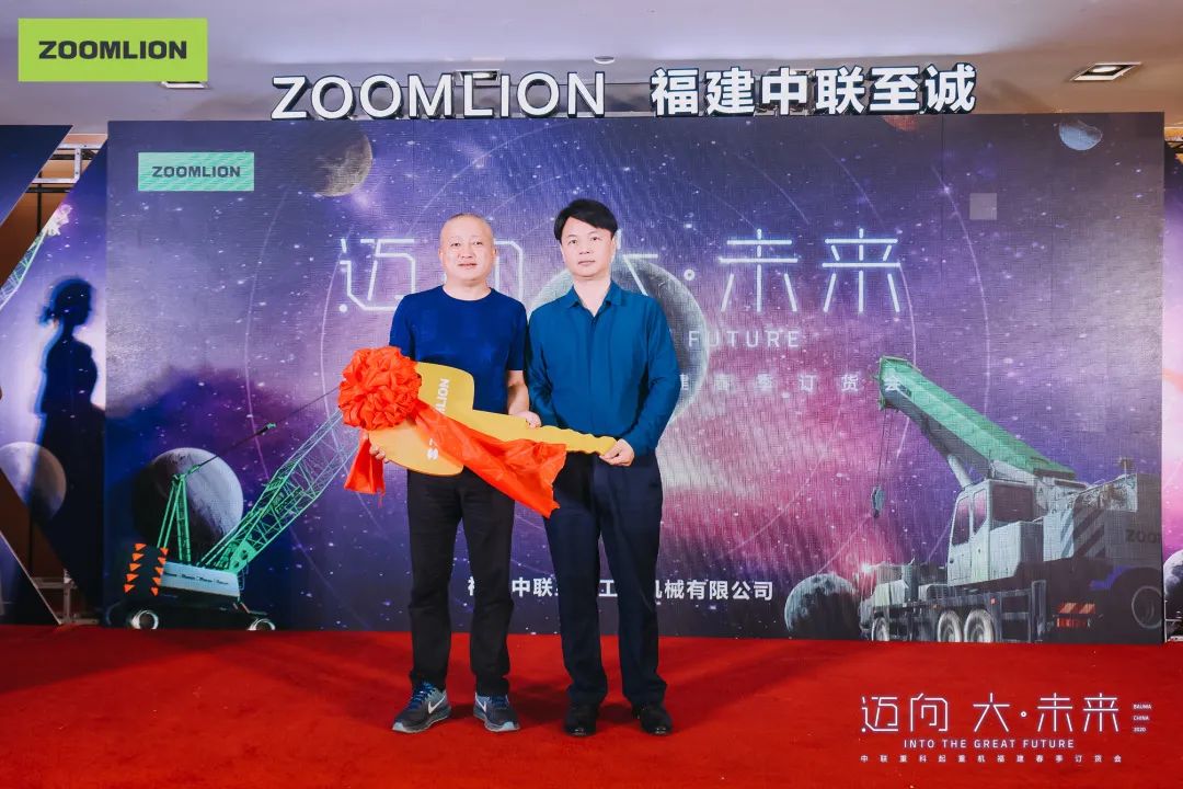 接下來就是產(chǎn)品交付儀式,福建中聯(lián)至誠工程機(jī)械有限公司董事長黃朝順先生對(duì)龍巖市鵬發(fā)汽車起重吊裝租賃有限公司表示祝賀,隨后將象征財(cái)富的“金鑰匙”交到鵬發(fā)董事長張龍先生手中,并祝愿龍巖市鵬發(fā)汽車起重吊裝租賃有限公司及現(xiàn)場(chǎng)的吊裝界各位精英在今后的日子里與中聯(lián)重科共同發(fā)展,攜手進(jìn)步,共創(chuàng)佳業(yè)!