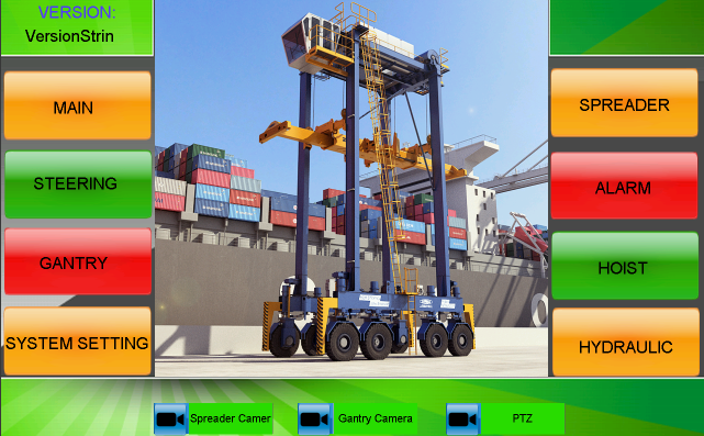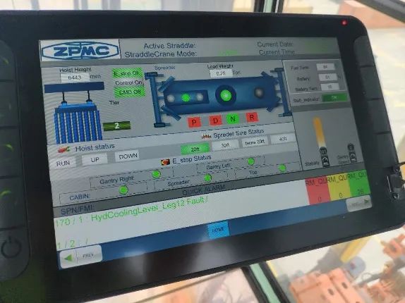 該軟件能夠詳細(xì)顯示跨運(yùn)車各執(zhí)行機(jī)構(gòu)動(dòng)態(tài)信息,讓坐在司機(jī)室內(nèi)的操作人員完全監(jiān)控到跨運(yùn)車實(shí)時(shí)動(dòng)態(tài)和車輛周圍狀態(tài),幫助操作人員及時(shí)準(zhǔn)確地對(duì)異常工況做出判斷并處理。