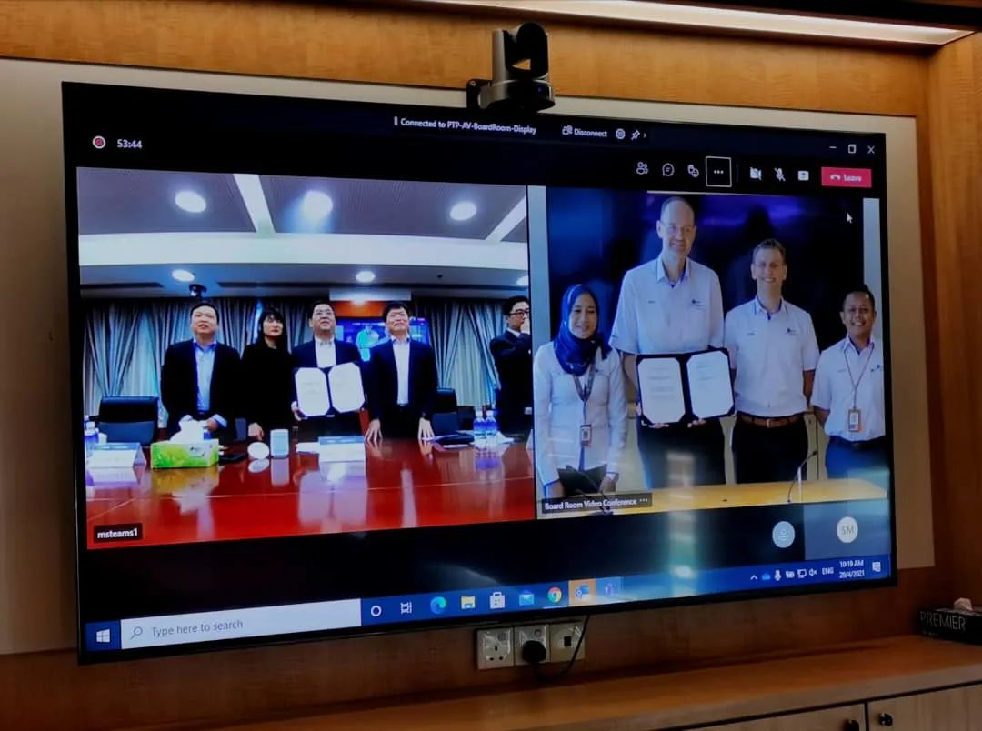 4月29日,振華重工與馬來西亞新山丹戎帕拉帕斯港(PTP碼頭)簽訂7臺岸橋與11臺市電輪胎吊項(xiàng)目。本次采用云簽約方式,以上海、新山兩地視頻連線的形式舉行。